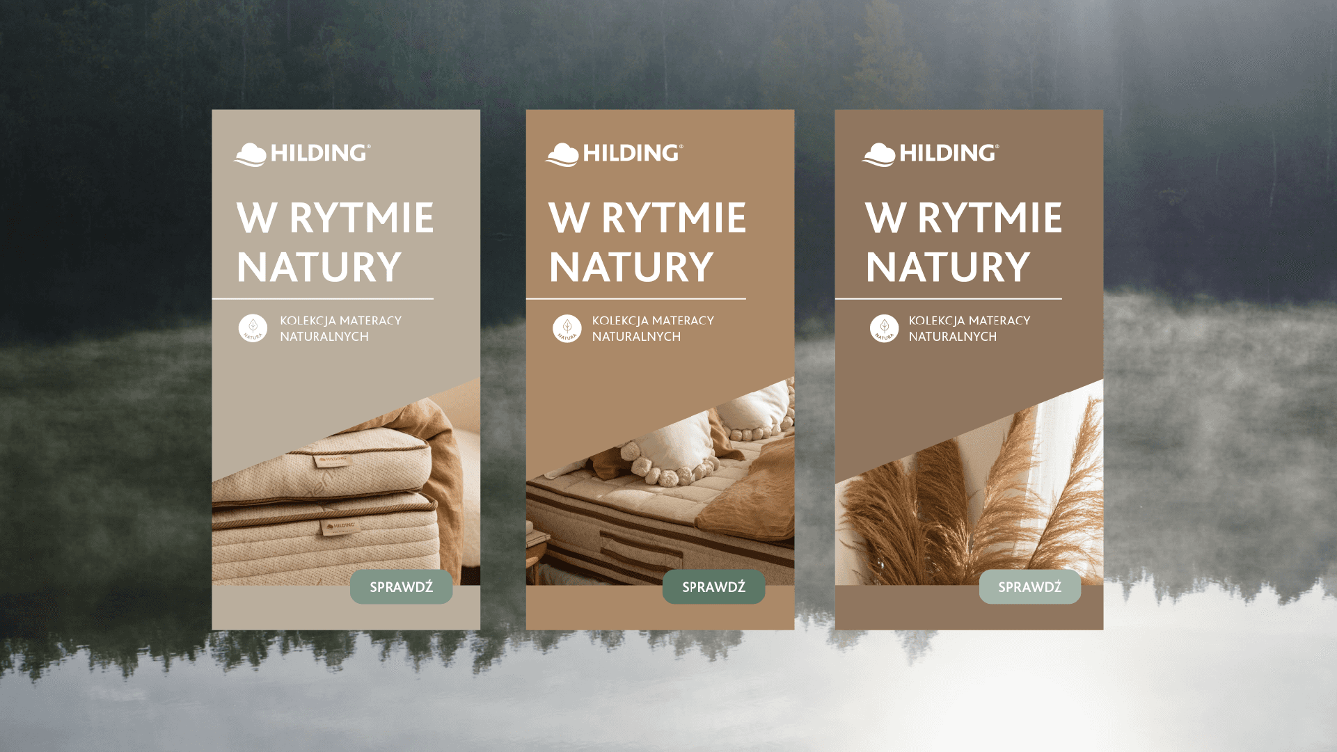 DLA MARKI HILDING, LIDERA RYNKU MATERACY W POLSCE, ZAPROJEKTOWAŁAM I WDROŻYŁAM KOMPLEKSOWĄ STRATEGIĘ KOMUNIKACJI NOWEJ LINII NATURALNYCH I EKOLOGICZNYCH MATERACY. PROJEKT KONCENTROWAŁ SIĘ NA PODKREŚLENIU AUTENTYCZNOŚCI PRODUKTÓW, ICH FUNKCJONALNOŚCI ORAZ BLISKOŚCI Z NATURĄ. ODPOWIADAŁAM ZA STWORZENIE STRATEGII NOWEJ KATEGORII PRODUKTOWEJ, OPARTEJ NA WARTOŚCIACH NATURALNEGO STYLU ŻYCIA ORAZ ŚWIADOMYCH, ZRÓWNOWAŻONYCH WYBORÓW. PRZYGOTOWAŁAM KONCEPCJĘ KREATYWNĄ ORAZ KEY VISUAL INSPIROWANE RYTMEM NATURY I IDEĄ GŁĘBOKIEGO, REGENERUJĄCEGO SNU. ZAKRES PRAC OBEJMOWAŁ PEŁNĄ IDENTYFIKACJĘ WIZUALNĄ — PALETĘ KOLORÓW, TYPOGRAFIĘ ORAZ MATERIAŁY GRAFICZNE SPÓJNE Z NARRACJĄ PRODUKTOWĄ. PROWADZIŁAM RÓWNIEŻ ART DIRECTION SESJI ZDJĘCIOWEJ, SKUPIONEJ NA JAKOŚCI, DETALACH I NATURALNYM CHARAKTERZE KOLEKCJI. INTEGRALNĄ CZĘŚCIĄ PROJEKTU BYŁA PRODUKCJA MATERIAŁÓW VIDEO, RENDERÓW ORAZ ANIMACJI PRODUKTOWYCH, WZMACNIAJĄCYCH STORYTELLING MARKI I KOMUNIKACJĘ W KANAŁACH DIGITAL. PROJEKT ZOSTAŁ ZREALIZOWANY W CZASIE MOJEJ DZIAŁALNOŚCI W REBELL STUDIO.